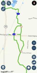 First picture is of C4B starting at junction WYO73 going south is closed all the way to Armburst rd. Reroute is clearly marked as starting just west of Rt77 and goes to Armburst rd.